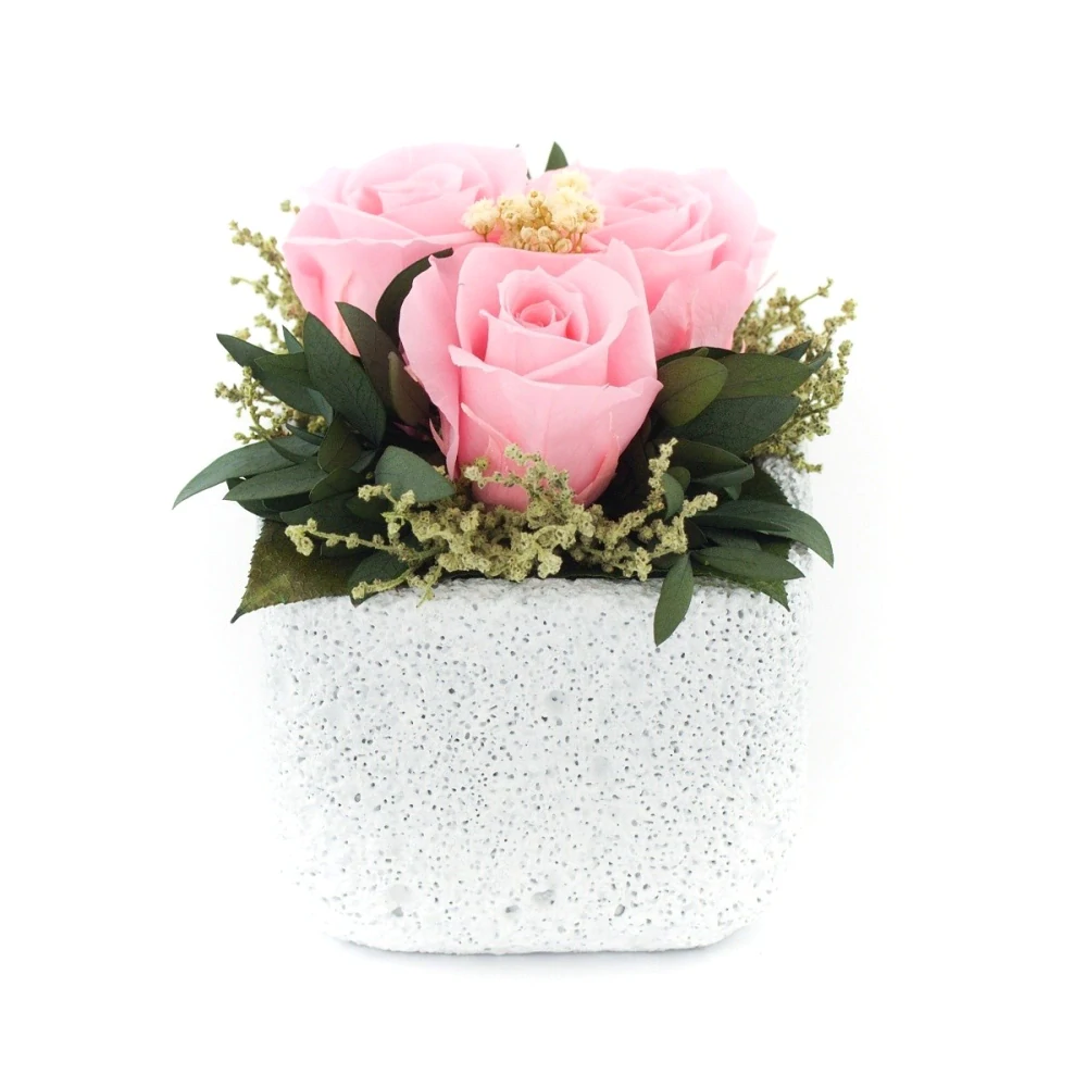 Aranžmá 3x stabilizovaná růže v betonové květináčku